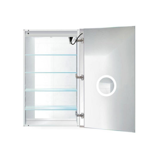 Krugg Reflections Svange 24" x 30" 5000K Single Right Opening Recessed/Surface-Mount Illuminated Silver Backed LED Medicine Cabinet Mirror With Built-in Defogger, Dimmer and Electrical Outlet