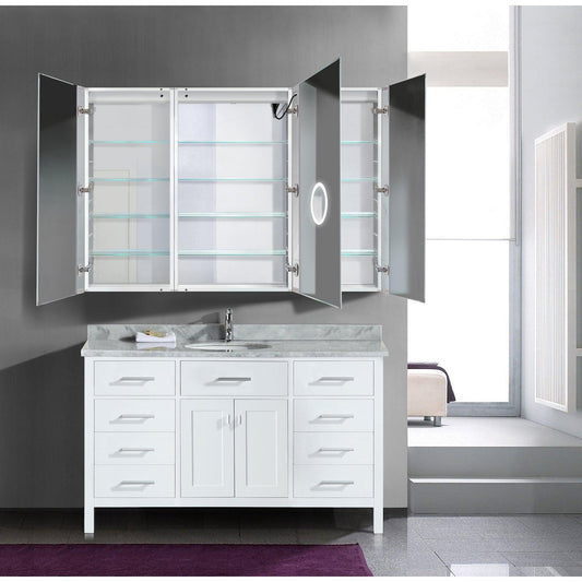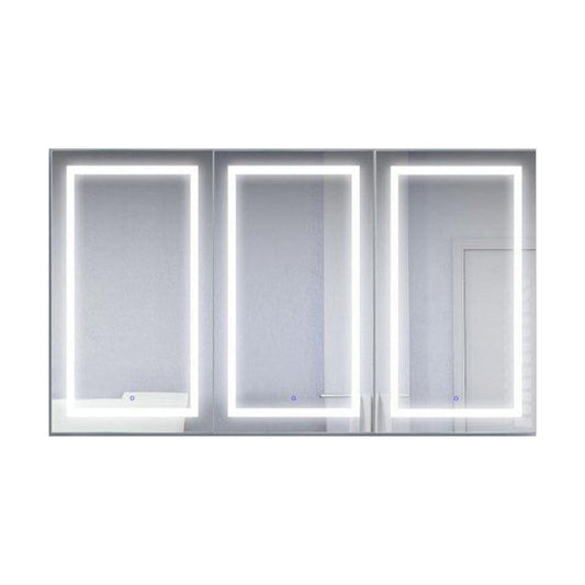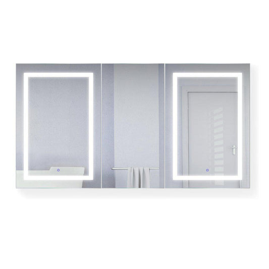 Krugg Reflections Svange 60" x 42" 5000K Single Tri-View Left-Right-Right Opening Recessed/Surface-Mount Illuminated Silver Backed LED Medicine Cabinet Mirror With Built-in Defogger, Dimmer and Electrical Outlet