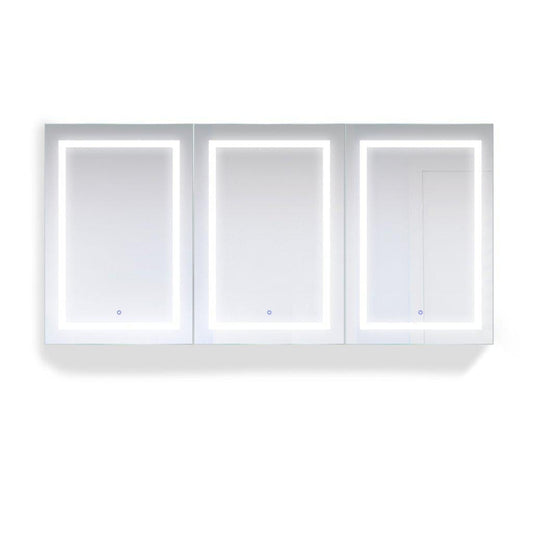 Krugg Reflections Svange 72" x 36" 5000K Tri-View Left-Right-Right Opening Recessed/Surface-Mount Illuminated Silver Backed LED Medicine Cabinet Mirror With Built-in Defogger, Dimmer and Electrical Outlet