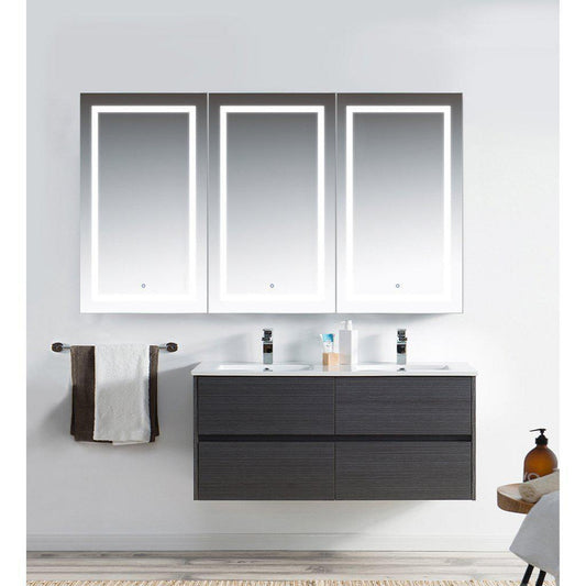 Krugg Reflections Svange 60" x 42" 5000K Double Left-Left-Right Opening Recessed/Surface-Mount Illuminated Silver Backed LED Medicine Cabinet Mirror With Built-in Defogger, Dimmer and Electrical Outlet