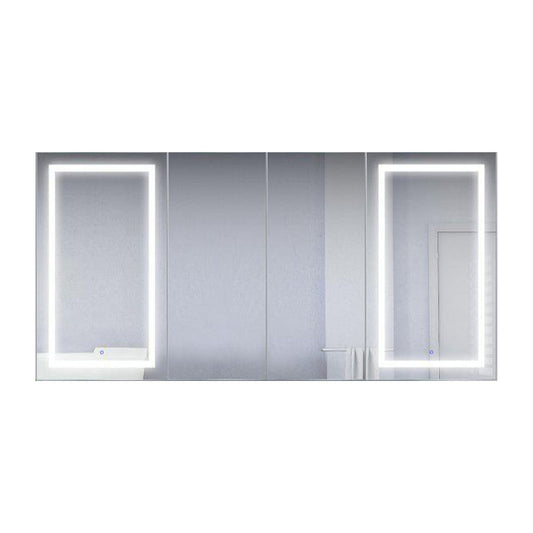 Krugg Reflections Svange 72" x 42" 5000K Tri-View Left-Left-Right Opening Recessed/Surface-Mount Illuminated Silver Backed LED Medicine Cabinet Mirror With Built-in Defogger, Dimmer and Electrical Outlet