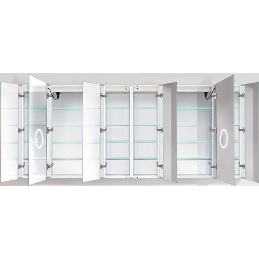 Krugg Reflections Svange 96" x 36" 5000K Double Hexa-View Left-Left-Left-Right-Right-Right Opening Recessed/Surface-Mount Illuminated Silver Backed LED Medicine Cabinet Mirror With Built-in Defogger, Dimmer and Electrical Outlet