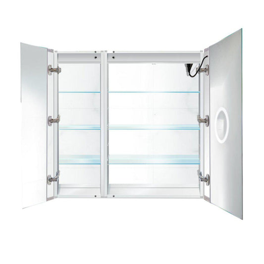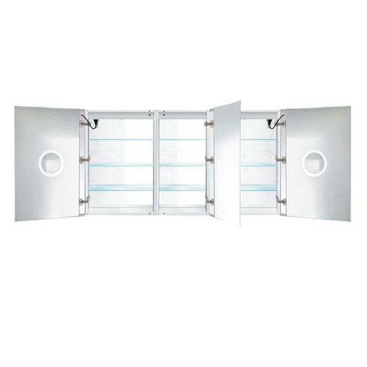 Krugg Reflections Svange 60" x 36" 5000K Single Tri-View Left-Left-Right Opening Recessed/Surface-Mount Illuminated Silver Backed LED Medicine Cabinet Mirror With Built-in Defogger, Dimmer and Electrical Outlet