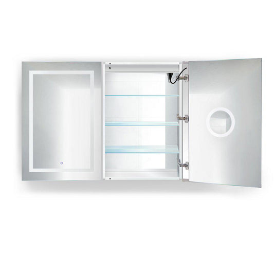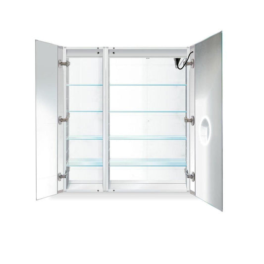 Krugg Reflections Svange 60" x 36" 5000K Double Left-Right-Right Opening Recessed/Surface-Mount Illuminated Silver Backed LED Medicine Cabinet Mirror With Built-in Defogger, Dimmer and Electrical Outlet