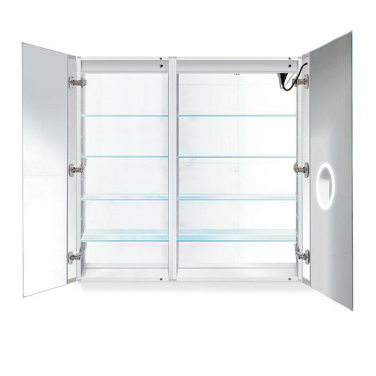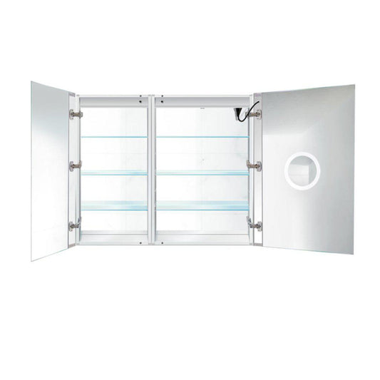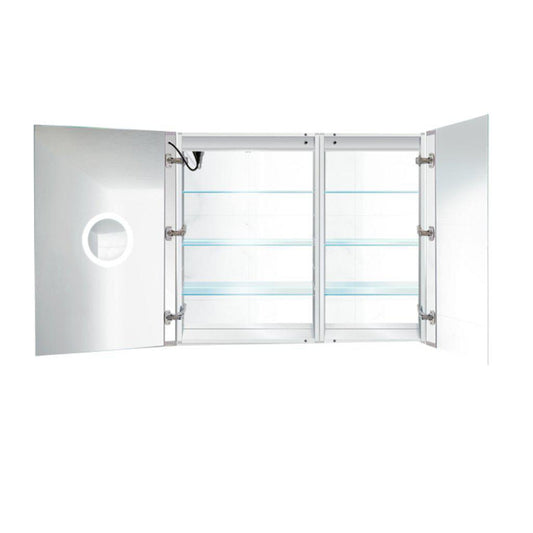 Krugg Reflections Svange 48" x 36" 5000K Double Dual Opening Recessed/Surface-Mount Illuminated Silver Backed LED Medicine Cabinet Mirror With Built-in Defogger, Dimmer and Electrical Outlet