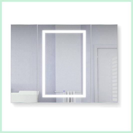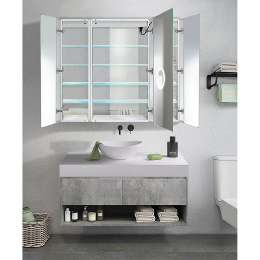 Krugg Reflections Svange 48" x 36" 5000K Single Tri-View Left-Right-Right Opening Recessed/Surface-Mount Illuminated Silver Backed LED Medicine Cabinet Mirror With Built-in Defogger, Dimmer and Electrical Outlet