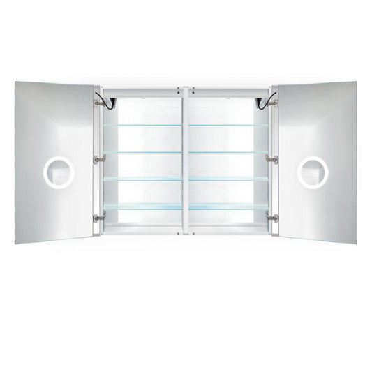 Krugg Reflections Svange 48" x 42" 5000K Double Dual Opening Recessed/Surface-Mount Illuminated Silver Backed LED Medicine Cabinet Mirror With Built-in Defogger, Dimmer and Electrical Outlet