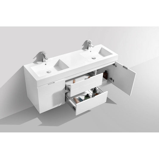 KubeBath Bliss 60" High Gloss White Wall-Mounted Modern Bathroom Vanity With Double Integrated Acrylic Sink With Overflow