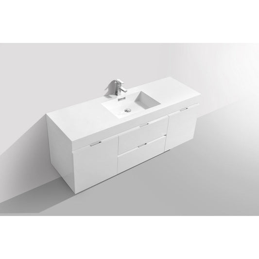 KubeBath Bliss 60" High Gloss White Wall-Mounted Modern Bathroom Vanity With Single Integrated Acrylic Sink With Overflow