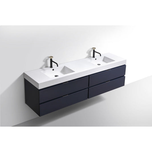 KubeBath Bliss 72" Blue Wall-Mounted Modern Bathroom Vanity With Double Integrated Acrylic Sink With Overflow