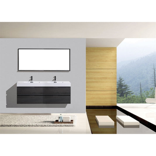 KubeBath Bliss 72" Gray Oak Wall-Mounted Modern Bathroom Vanity With Double Integrated Acrylic Sink With Overflow