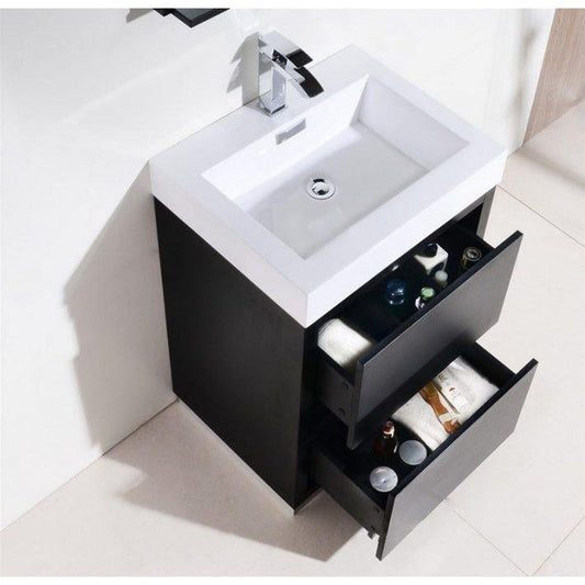 KubeBath Bliss 24" Black Freestanding Modern Bathroom Vanity With Single Integrated Acrylic Sink With Overflow