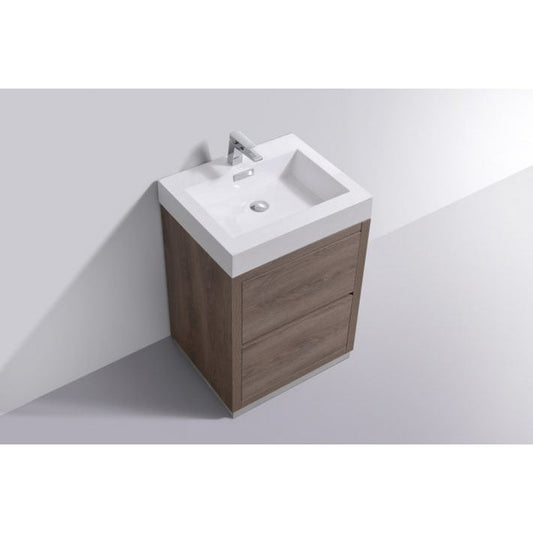 KubeBath Bliss 24" Butternut Freestanding Modern Bathroom Vanity With Single Integrated Acrylic Sink With Overflow