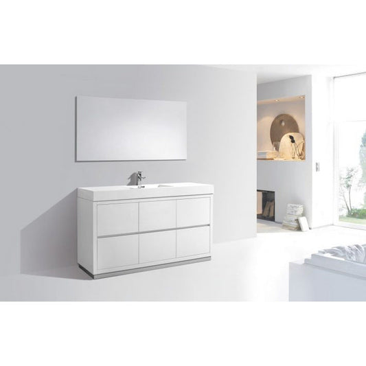 KubeBath Bliss 60" High Gloss White Freestanding Modern Bathroom Vanity With Single Integrated Acrylic Sink With Overflow