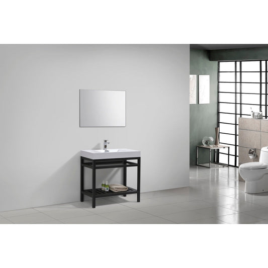 KubeBath Cisco 36" Stainless Steel Matte Black Console Freestanding Modern Bathroom Vanity With Single Integrated Acrylic Sink With Overflow