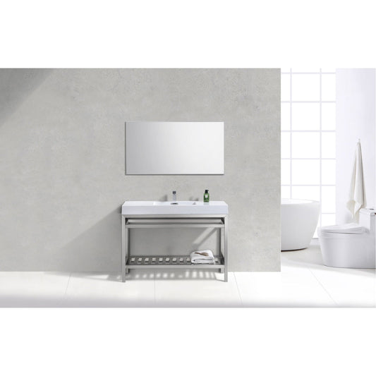 KubeBath Cisco 48" Stainless Steel Chrome Console Freestanding Modern Bathroom Vanity With Single Integrated Acrylic Sink With Overflow