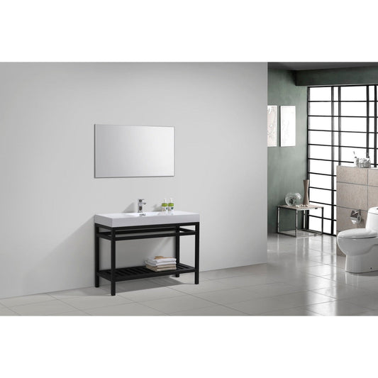 KubeBath Cisco 48" Stainless Steel Matte Black Console Freestanding Modern Bathroom Vanity With Single Integrated Acrylic Sink With Overflow