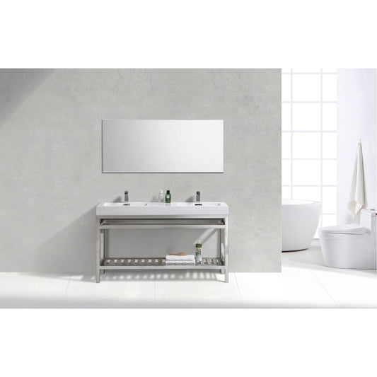 KubeBath Cisco 60" Stainless Steel Chrome Console Freestanding Modern Bathroom Vanity With Double Integrated Acrylic Sink With Overflow