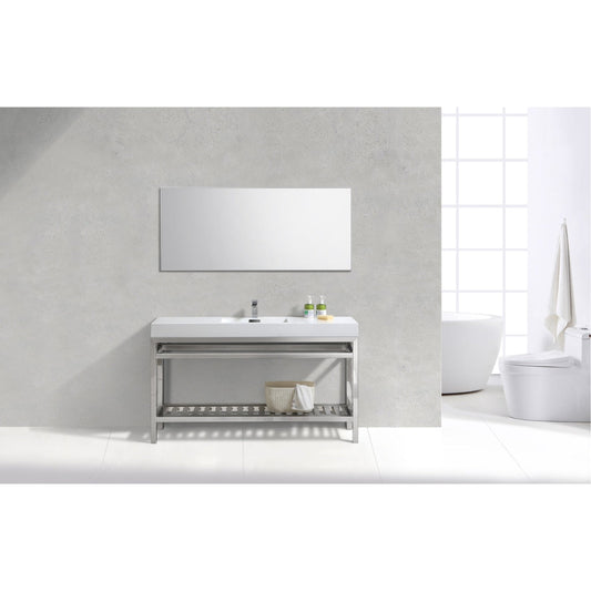 KubeBath Cisco 60" Stainless Steel Chrome Console Freestanding Modern Bathroom Vanity With Single Integrated Acrylic Sink With Overflow