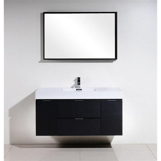 KubeBath Bliss 48" Black Wood Wall-Mounted Modern Bathroom Vanity With Single Integrated Acrylic Sink With Overflow