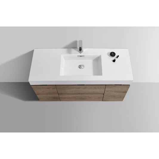 KubeBath Bliss 48" Butternut Wall-Mounted Modern Bathroom Vanity With Single Integrated Acrylic Sink With Overflow