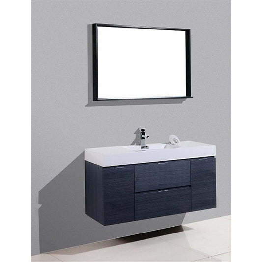 KubeBath Bliss 48" Gray Oak Wall-Mounted Modern Bathroom Vanity With Single Integrated Acrylic Sink With Overflow