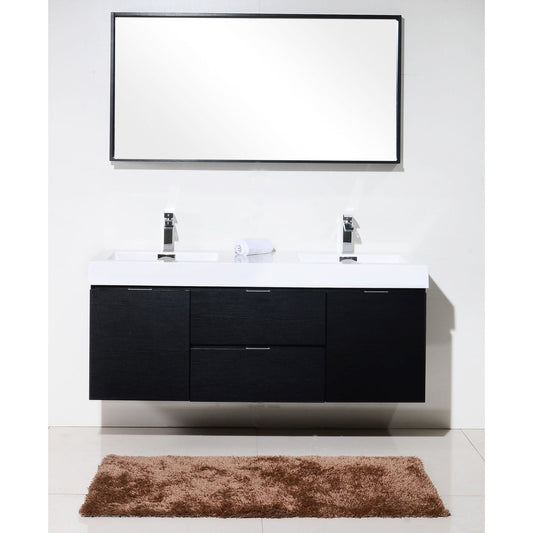 KubeBath Bliss 60" Black Wall-Mounted Modern Bathroom Vanity With Double Integrated Acrylic Sink With Overflow