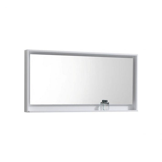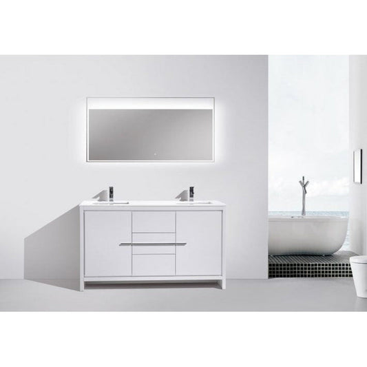 KubeBath Dolce 60" High Gloss White Freestanding Modern Bathroom Vanity With Vanity Top & Ceramic Double Sink With Overflow and 60" White Framed Mirror With Shelf