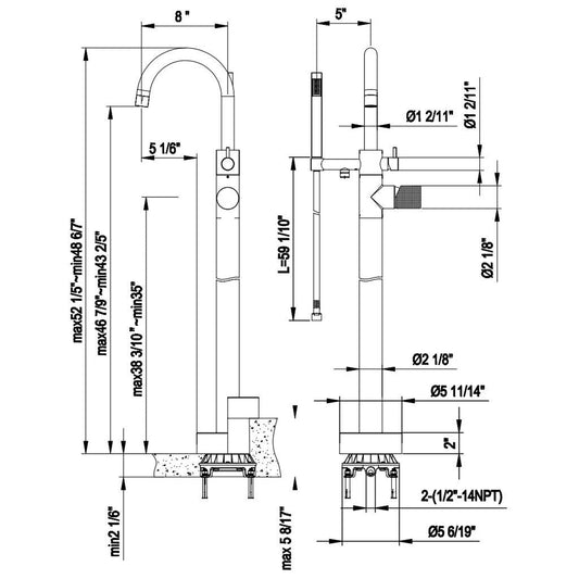 LaToscana Alessandra Brushed Nickel Floor-Mounted Freestanding Tub Filler With Handheld Shower