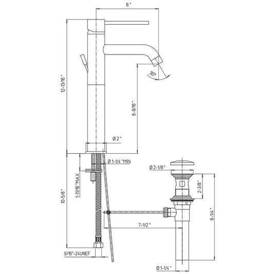 LaToscana Elba Brushed Nickel Tall Single Lever Handle Lavatory Vessel Faucet