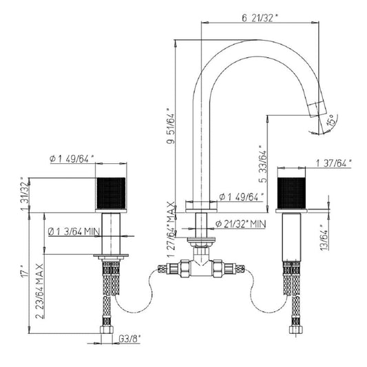 LaToscana Elba Matt Black Widespread Lavatory Faucet With Lever Handles