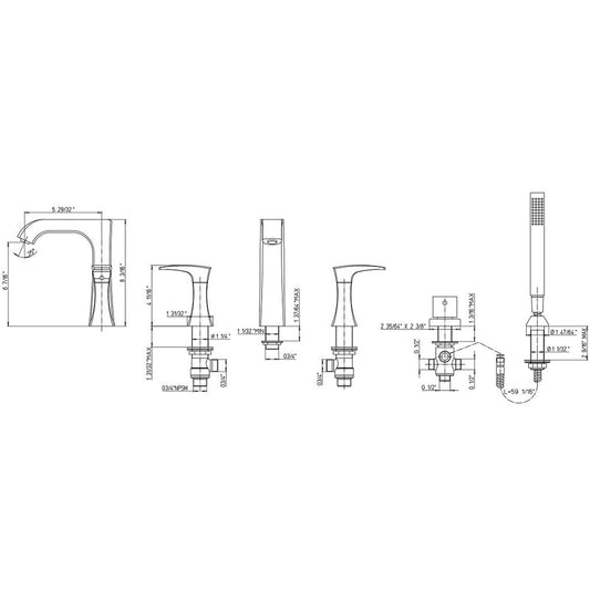 LaToscana Lady Chrome Roman Tub Faucet With Lever Handles, Diverter & Handheld Shower