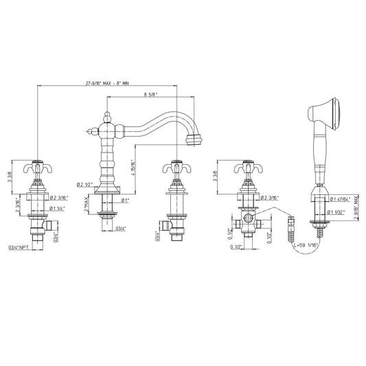 LaToscana Ornellaia Chrome Roman Tub Faucet With Cross Handles, Diverter & Handheld Shower