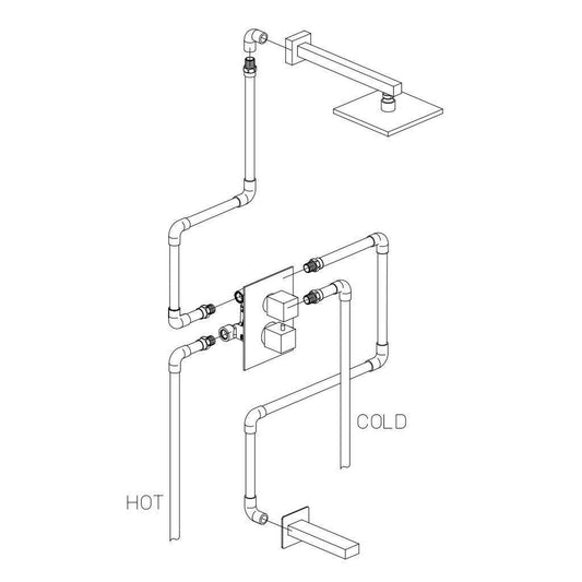 LaToscana Quadro Chrome Thermostatic Tub & Shower Kit