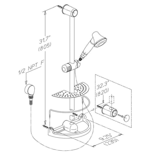 LaToscana Water Harmony 33" Chrome Wall-Mounted Slide Bar Kit With 2-Function Handheld Shower