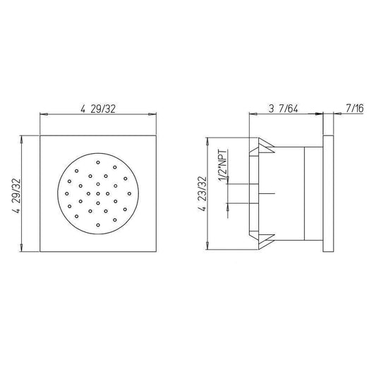 LaToscana Shower Line Brushed Nickel Square Concealed Body Jet