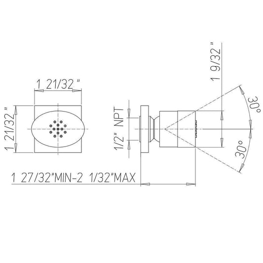 LaToscana Shower Line Brushed Nickel Square Concealed Body Jet
