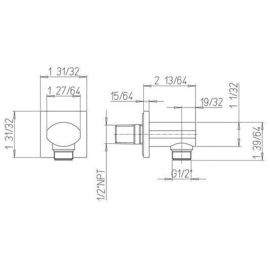 LaToscana Shower Line Brushed Nickel Square Brass Drop Elbow