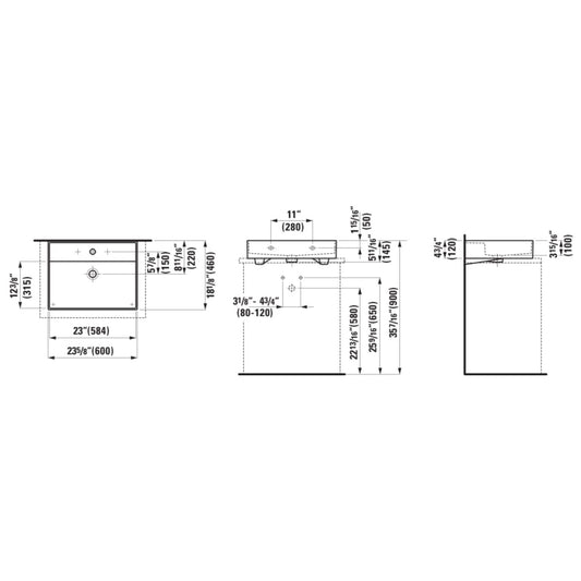Laufen Kartell 24" x 18" White Countertop Shelf-Right Bathroom Sink With 3 Faucet Holes
