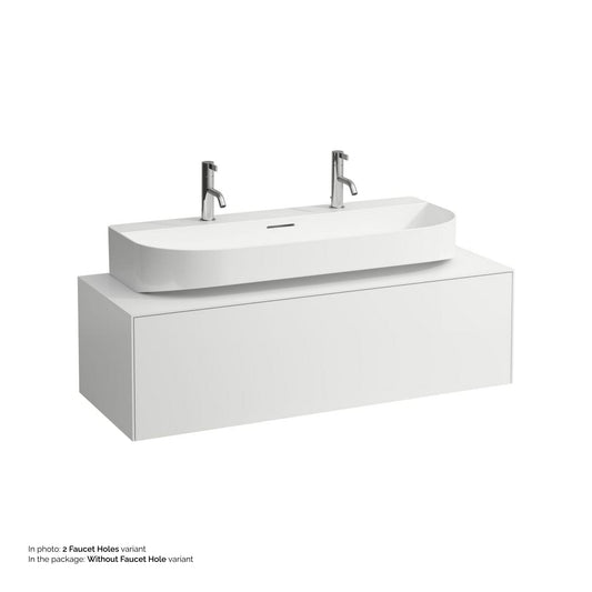 Laufen Sonar 39" Matte White Ceramic Countertop Bathroom Sink With 2 Faucet Holes