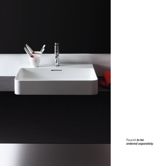 Laufen Val 24" x 17" White Ceramic Countertop Bathroom Sink With Faucet Hole