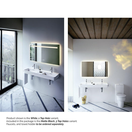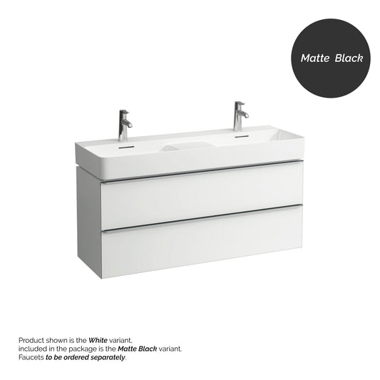Laufen Val 47" x 17" Matte Black Ceramic Wall-Mounted Double Bathroom Sink With 2 Faucet Holes