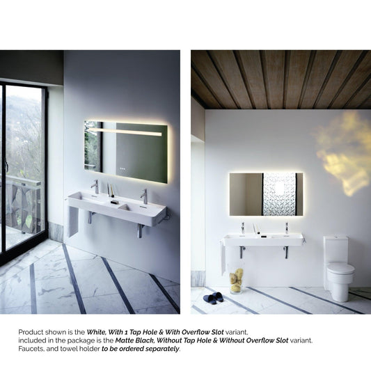 Laufen Val 47" x 17" Matte Black Ceramic Wall-Mounted Double Bathroom Sink Without Faucet Hole