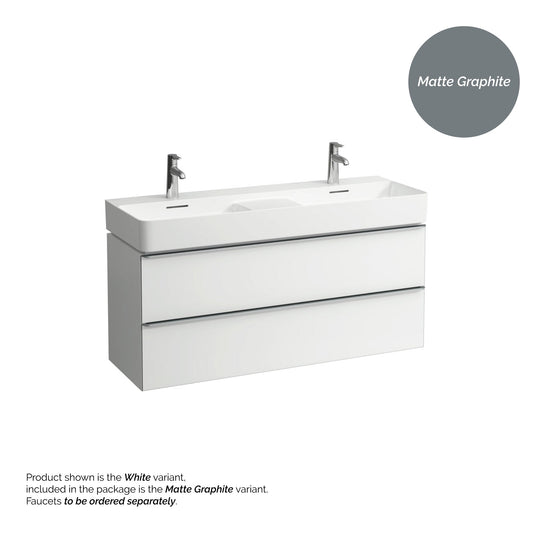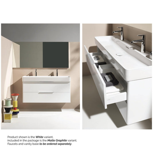 Laufen Val 47" x 17" Matte Graphite Ceramic Wall-Mounted Double Bathroom Sink With 2 Faucet Holes