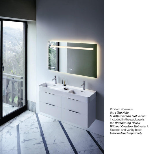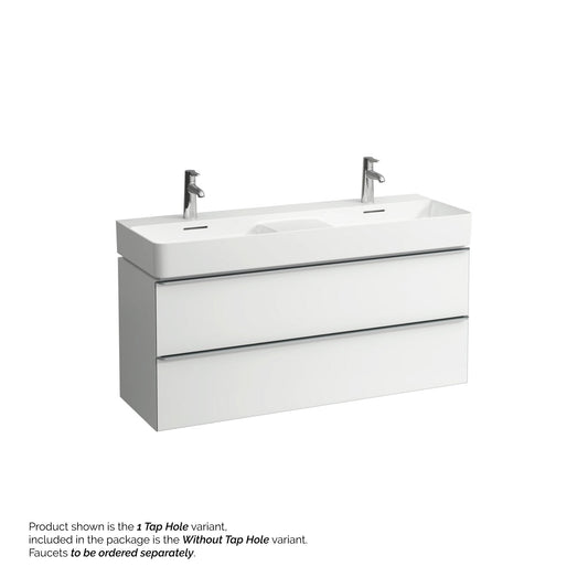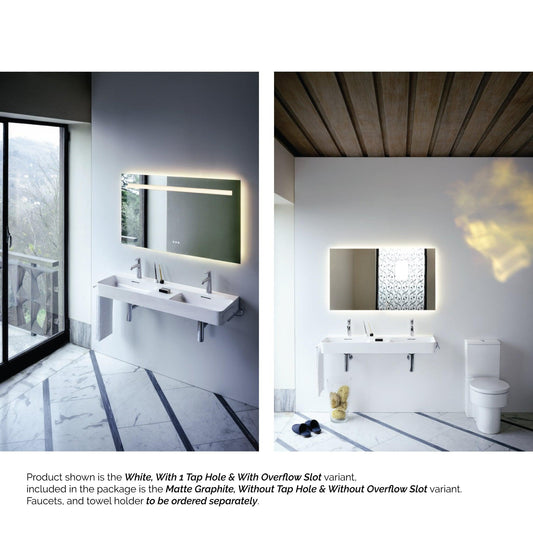Laufen Val 47" x 17" Matte White Ceramic Wall-Mounted Double Bathroom Sink Without Faucet Hole