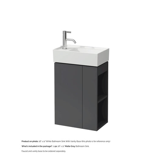 Laufen Kartell 18" x 11" Matte Gray Wall-Mounted Tap Bank-Right Bathroom Sink Without Faucet Hole