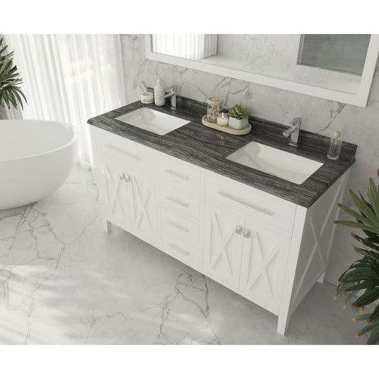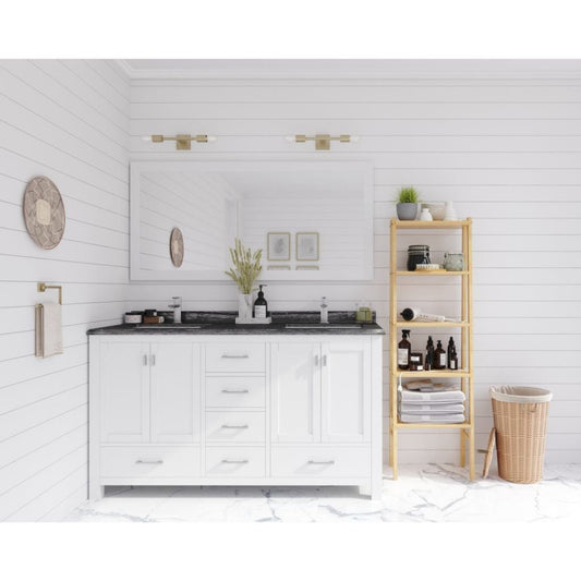 Laviva Wimbledon 60" White Vanity Base and Black Wood Marble Countertop With Double Rectangular Ceramic Sinks