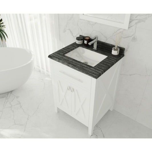 Laviva Wimbledon 24" White Vanity Base and Black Wood Marble Countertop With Rectangular Ceramic Sink