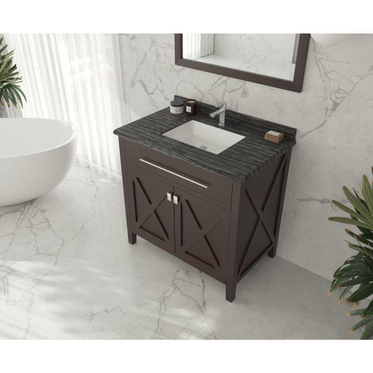 Laviva Wimbledon 36" Brown Vanity Base and Black Wood Marble Countertop With Rectangular Ceramic Sink