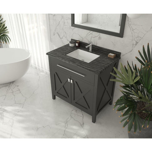 Laviva Wimbledon 36" Gray Vanity Base and Black Wood Marble Countertop With Rectangular Ceramic Sink